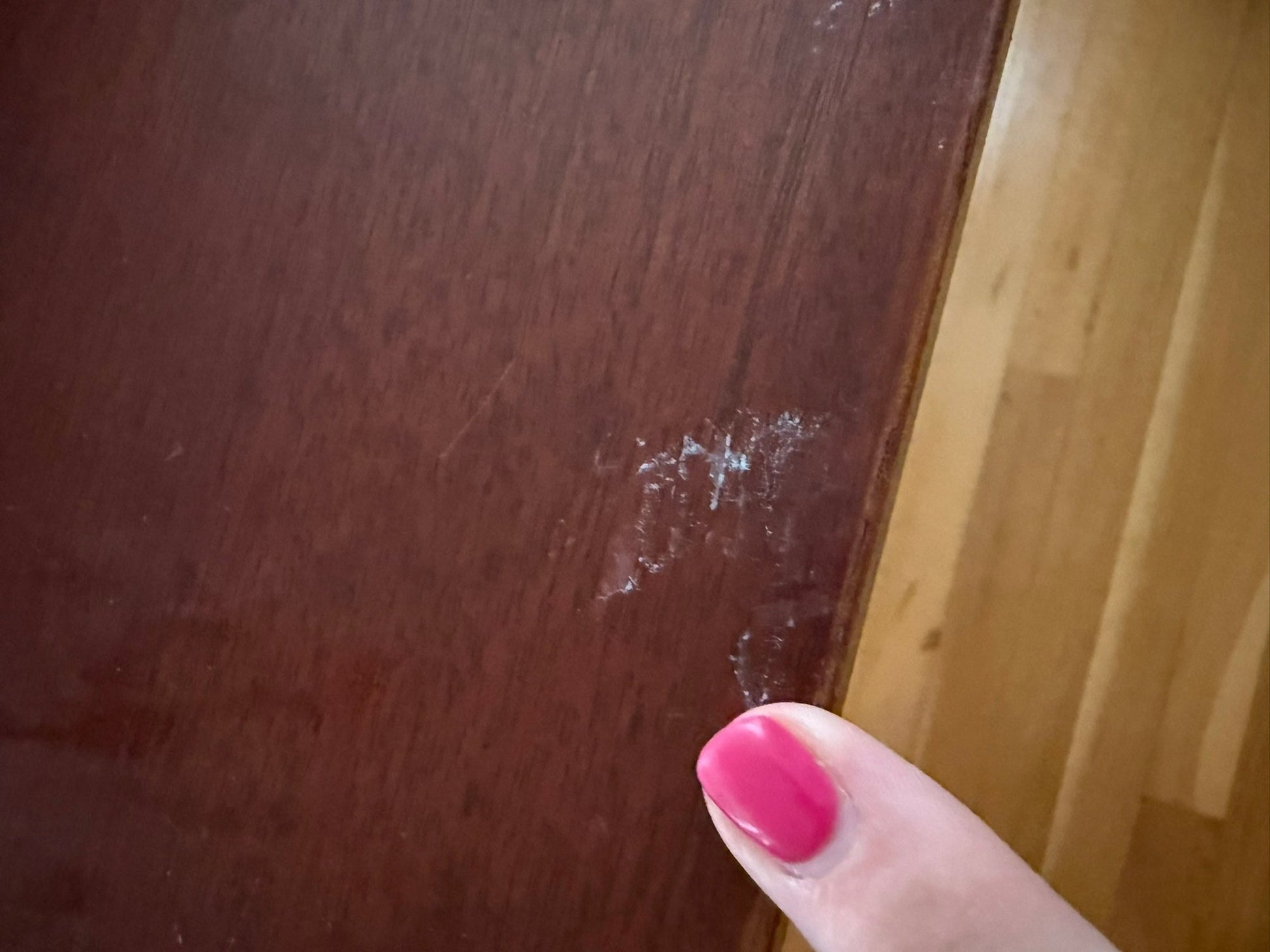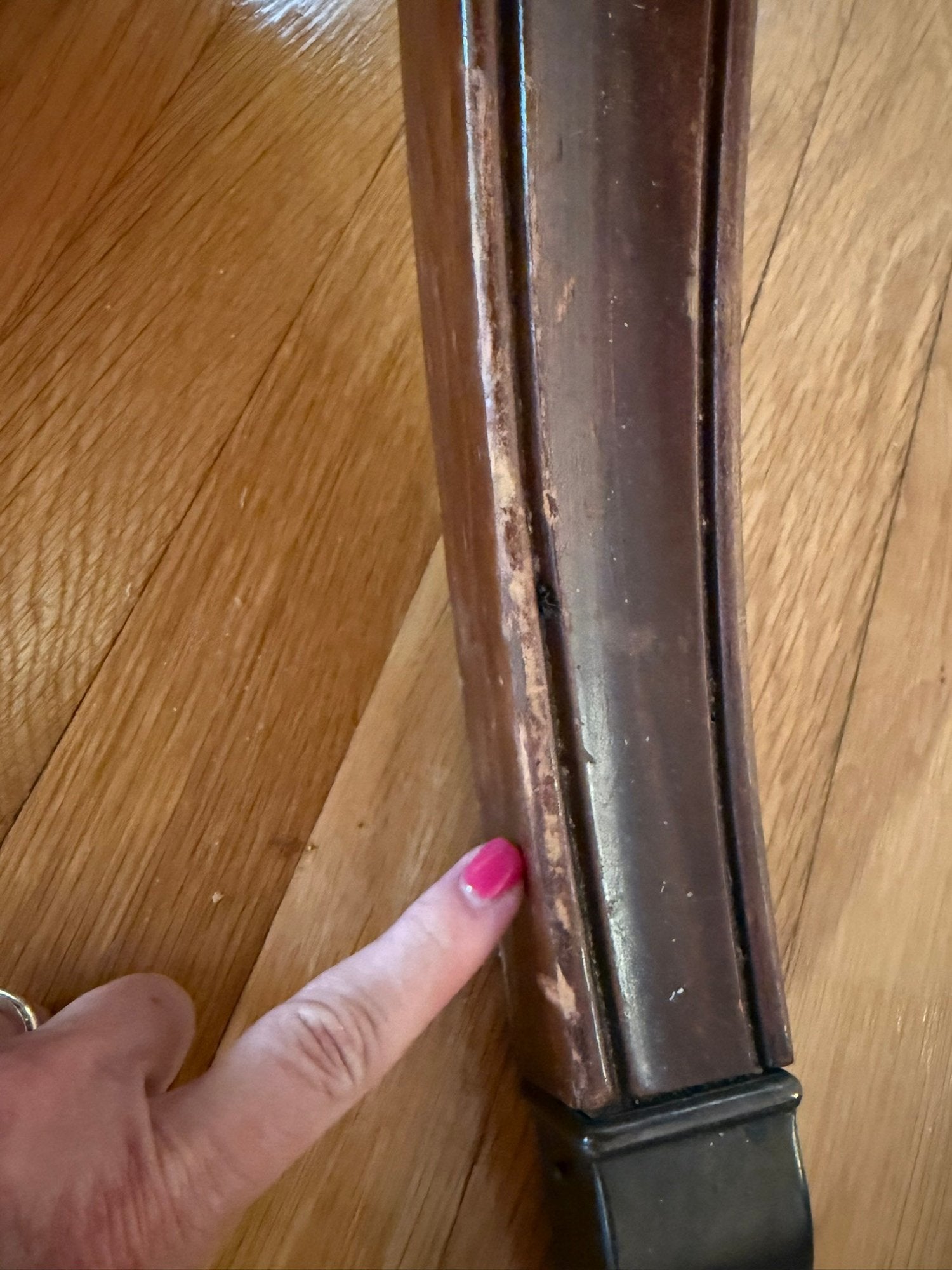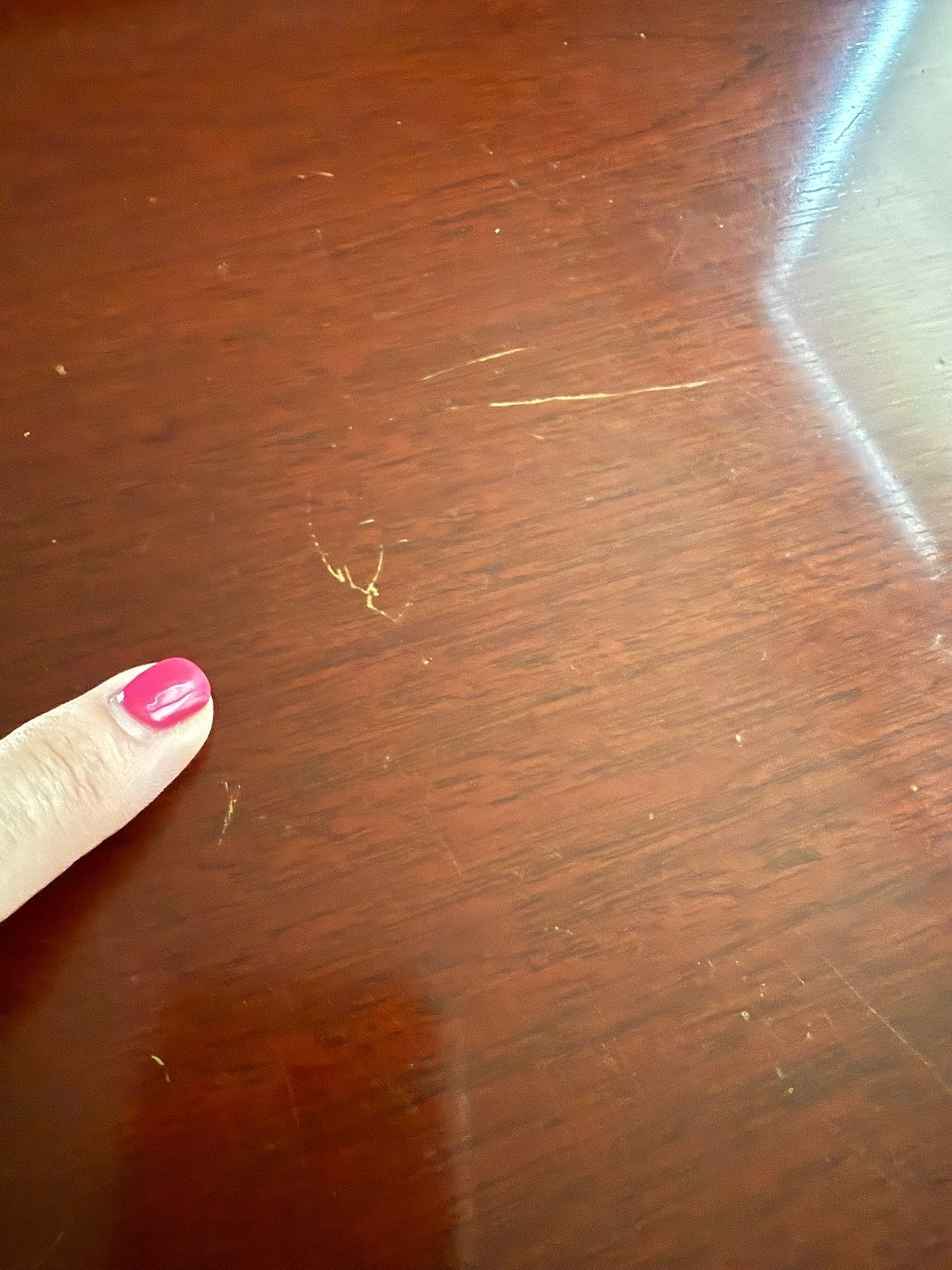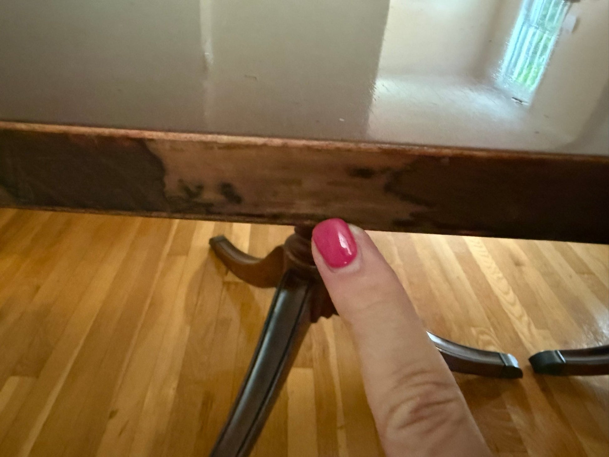 The table shows light scratches, small scuffs, and minor edge discoloration consistent with age and use but remains solid, sturdy, and elegant in presentation. With its classic Federal-inspired silhouette and expandable size, it’s ideal for both everyday dining and formal entertaining.